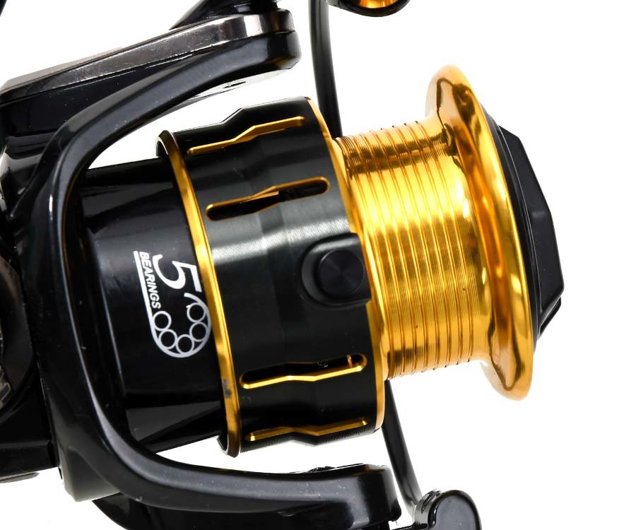 В линейке безынерционных катушек под названием Maturity инженерам компании Ryobi удалось одновременно совместить стильный дизайн (в золотисто-черных тонах), надежность и один из важных для многих рыболовов показателей - достаточно невысокий ценник. Элементы корпуса выполнены из алюминия, а для V-образного ротора берется инновационный композитный материал NCRМ. Кроме этого, стоит отметить перфорированную шпулю из алюминия, которая имеет скошенный бортик, обеспечивающий максимально легкий сход лески, а следовательно - дальний заброс приманки. Передний фрикционный тормоз с микрорегулировкой защищен от воды и грязи специальной резиновой прокладкой. Отличительной чертой этой серии является весьма мягкий ход, обеспечиваемый пятью подшипниками. Как и полагается, катушки оснащены стопором обратного хода, антиреверсом и возможностью перестановки рукояти на противоположную сторону. Т-образный прорезиненный кноб обеспечит надежный хват. В общем, Ryobi Maturity оставляет впечатление, будто вы пользуетесь более дорогой катушкой высокого класса.