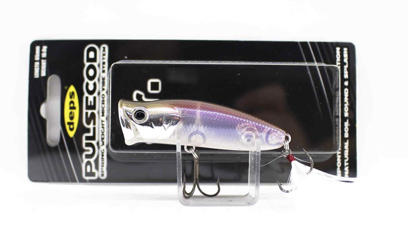 Воблер Pulsecod - поппер от компании Deps. Область применения его - это в основном ловля у поверхности воды на неглубоких, заросших травой водоемах, или же просто в верхних слоях воды. Отличительной чертой во внешнем облике Pulsecod является большая лобовая часть. Звуки, издаваемые им на рывках, очень интересные. В головной части находится пружина с шариком, и воблер продолжает вибрировать при остановках. Габариты этого поппера довольно внушительные, что предполагает работу не только по окуню, например, но и по щуке. У воблера Pulsecod внутренняя оригинальная система балансировки, благодаря чему воблер на паузах ведет себя очень заманчиво для рыбы, образуя колебания определенной амплитуды и ритма.