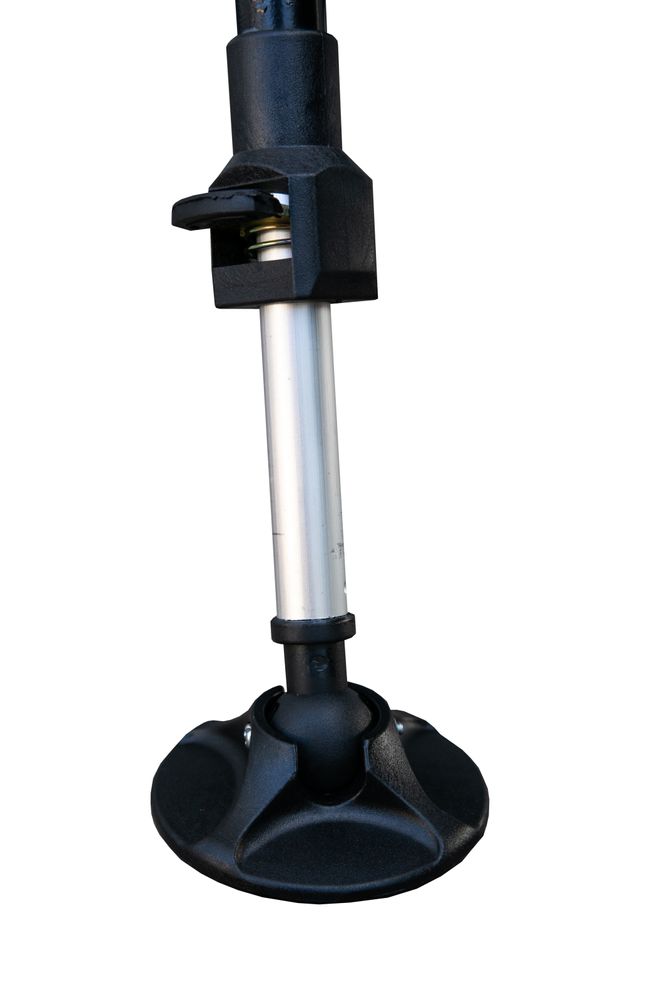 8 телескопических ножек расположены широко, обеспечивают хорошую устойчивость всей конструкции. Высота каждой ножки регулируется независимо. На концах ножек расположены крупные круглые колпачки, препятствующие глубокому погружению раскладушки в мягкий грунт или песок на берегу.