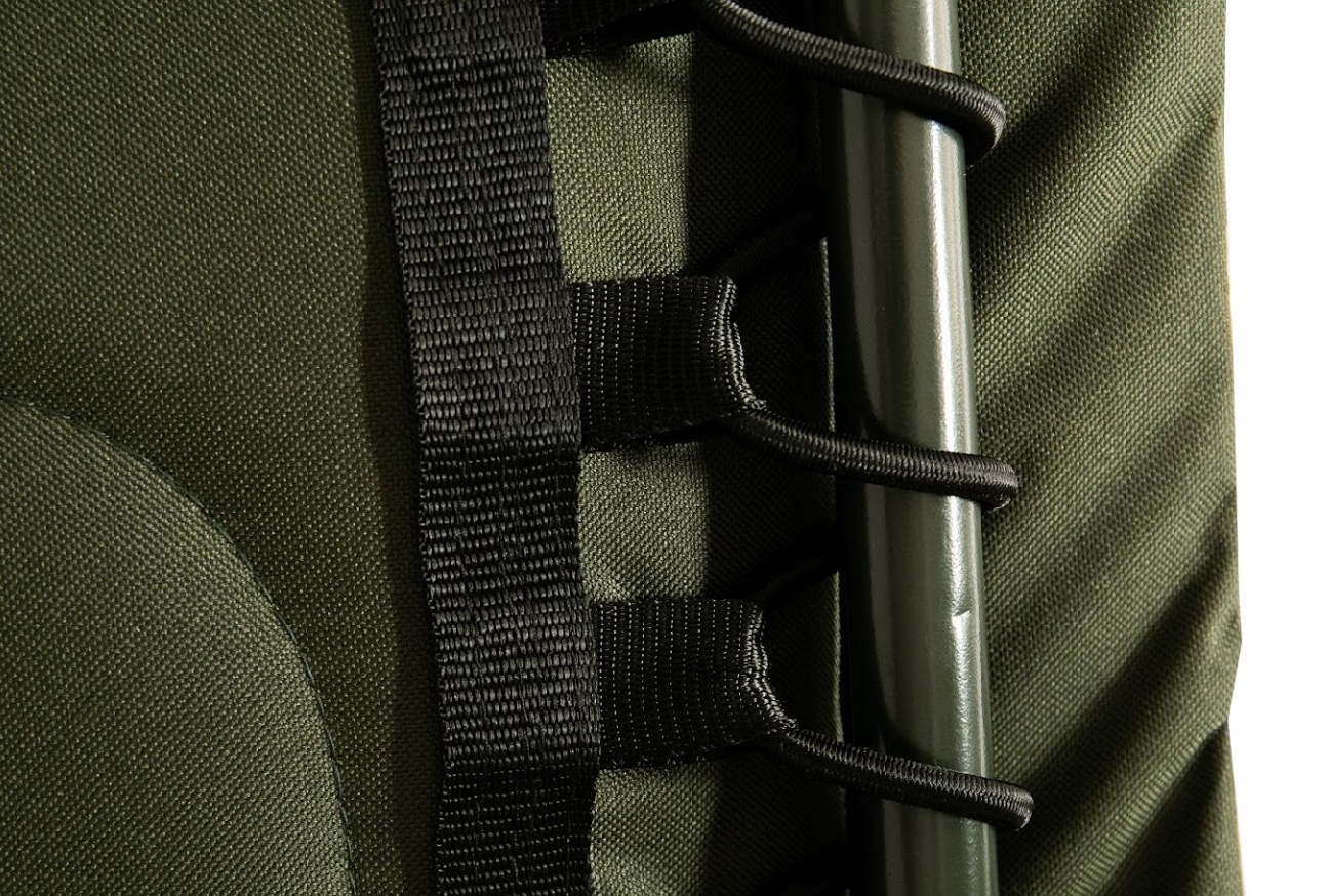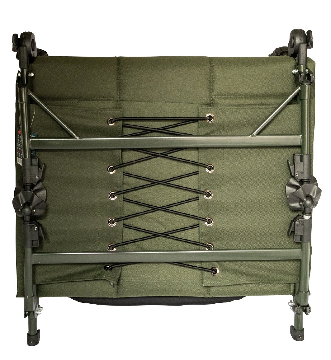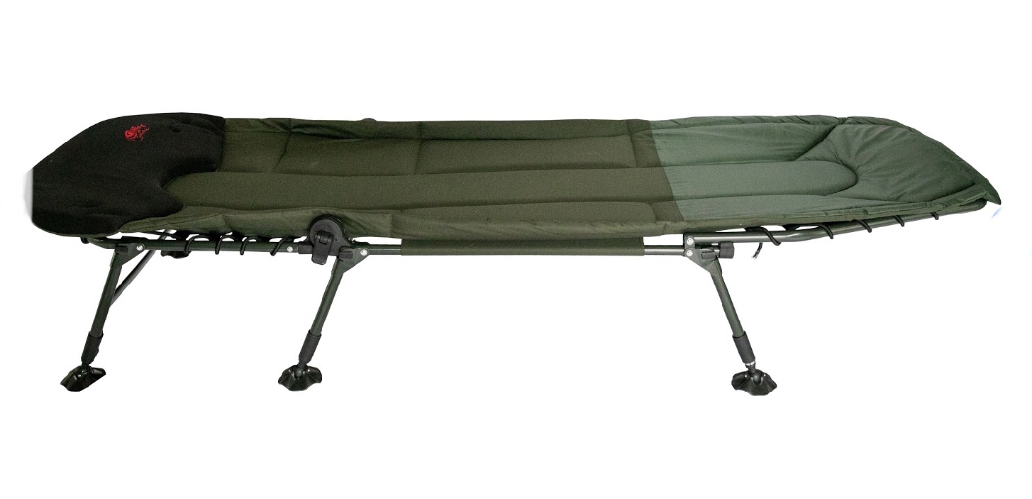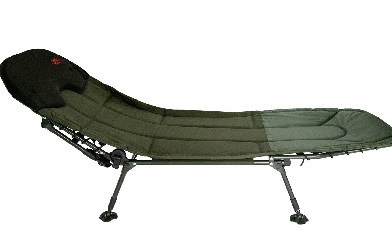 Простая в использовании и очень надежная (благодаря стальному каркасу) карповая раскладушка, способная выдержать нагрузку до 150 кг.Благодаря регулируемому наклону спинки модель может использоваться и как карповая кровать, и как рыбацкое кресло одновременно.