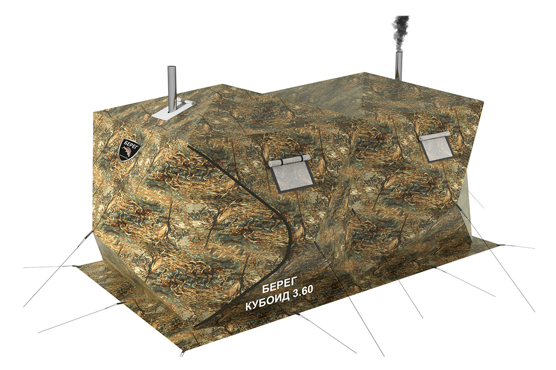 Палатка Кубоид 3.60 Берег - всесезонная палатка куб для зимней рыбалки, охоты и отдыха на природе. Кубоид 360 имеет прямоугольную форму. Вместимость – 4-6 человек.