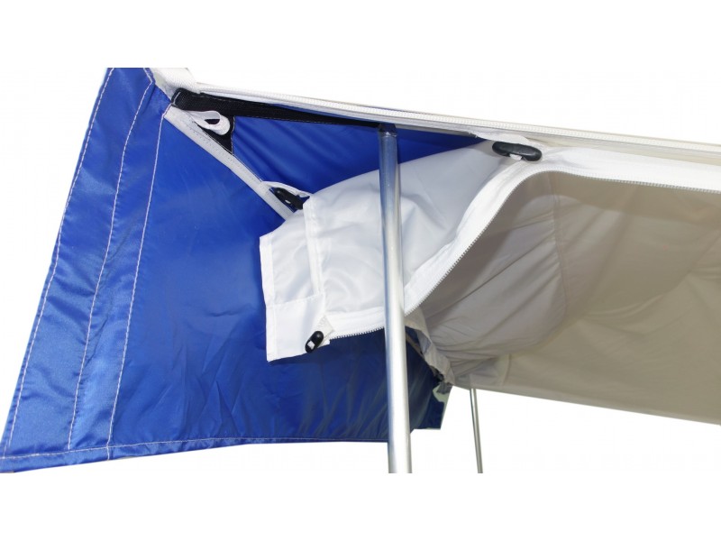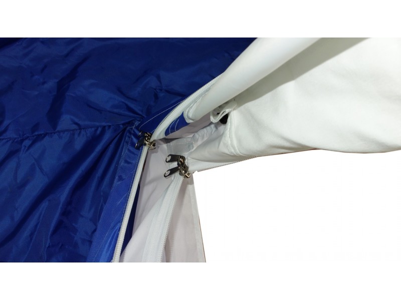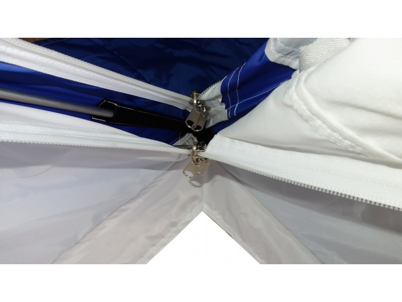4. Открыть одну сторону, расстегнув молнии. Установить стойки.