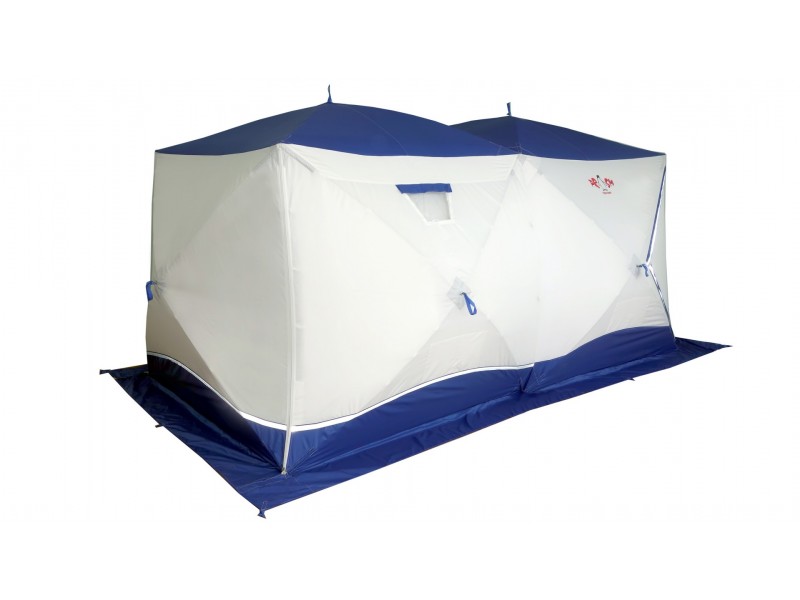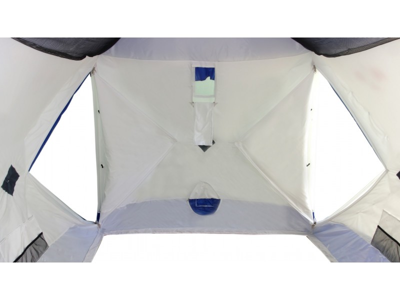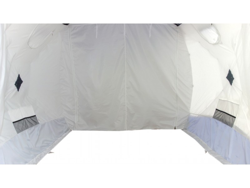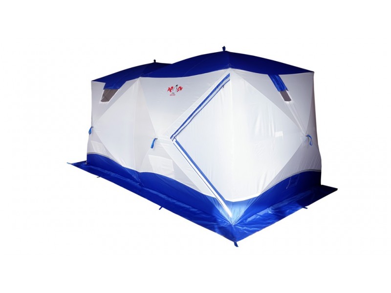 Всесезонная палатка Призма Шелтерс "BIG TWIN" (2-сл.) - новинка сезона! Имеет форму двойного куба, что позволяет организовать базовый лагерь от 4-х человек и при этом рационально использовать пространство. "Big Twin" - это не только укрытие для рыбаков. Благодаря конструкции "Шелтерс", одна из сторон поднимается и становится крышей, тем самым модифицируя палатку в шатер. Летом, установив палатку на берегу водоема, вы находитесь в укрытии и в то же время имеете открытый доступ к воде и абсолютно свободно работаете со снастями. В то же время вещи, прикормка, насадка, снасти - всё находится рядом в укрытии. Размеры "Big Twin" позволяют комфортно расположить вещи и с удобством разместиться самим. Зимой сверлить лунки можно непосредственно в установленной палатке. Несмотря на свои размеры, палатка выдерживает порывистый ветер. Легко ставится в любую погоду. Для удобства в палатке также сделано два входа. Входы сделаны напротив друг друга, что позволяет оптимизировать внутреннее пространство (при этом открывающая сторона находится напротив дверей). Входы с фиксатором – липучкой выполнены в угловом варианте и снабжены специальной зимней молнией, которая снаружи имеет защитную планку, предотвращающую от замерзания. На наружной юбке имеются оттяжки для крепления порогов при отсутствии снега. Тент кроме поднимающейся стороны и двух входов имеет: 3 форточки, выполненных из прозрачной морозостойкой ПВХ-плёнки (одна полностью съёмная), 4 настрочных кармана с сеткой, 4 потолочных кармана-сетки, выход под трубу на липе. Основной цвет белый с цветной крышей и порогами. Снаружи имеются светоотражающие элементы, что очень важно для безопасности на льду в темное время суток.