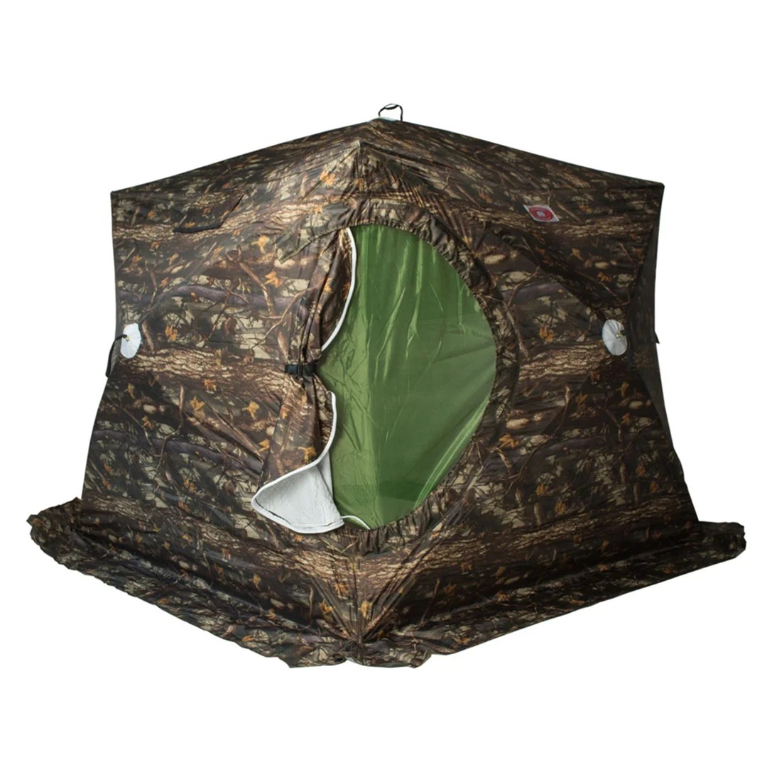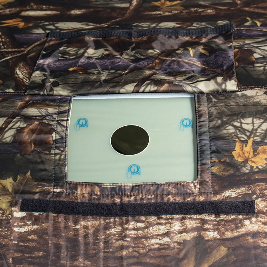 В комплект палатки входит плотный пол. Модель снабжена ветро/снегозащитной юбкой (25 см), двумя большими окнами с москитной сеткой, окном на липучке с дополнительной вставкой под трубу, нижним окном приточки воздуха. К палатке прилагается чехол для переноски и хранения.