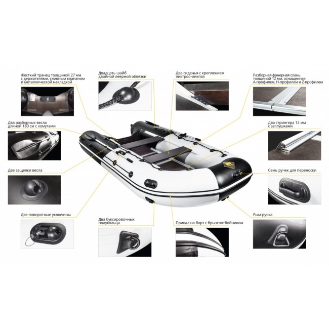 В конструкциии лодки продумаго все, что нужно для комфортной и безопасной эксплуатации: удобные передвижные сидения и глубокий кокпит позволит передвигаться и отдыхать с комфортом, а дополнительные усиления и защиты повысят безопасность лодки в любой ситуации!