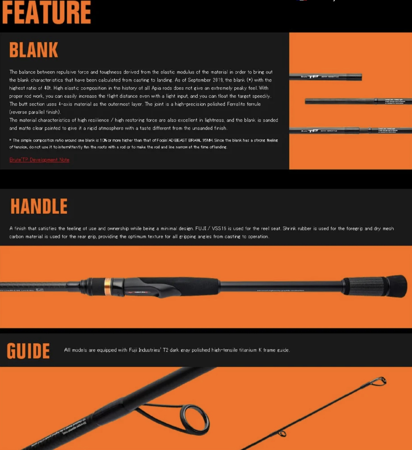 Apia Grandage Brute — линейка высококлассных японских удилищ, созданная с использованием лучших материалов. Бланк удилища сделан из углеродного волокна третьего поколения TORAYCA® M40X и T1100G. Дополнительно бланк усилен технологией NANOALLOY®.