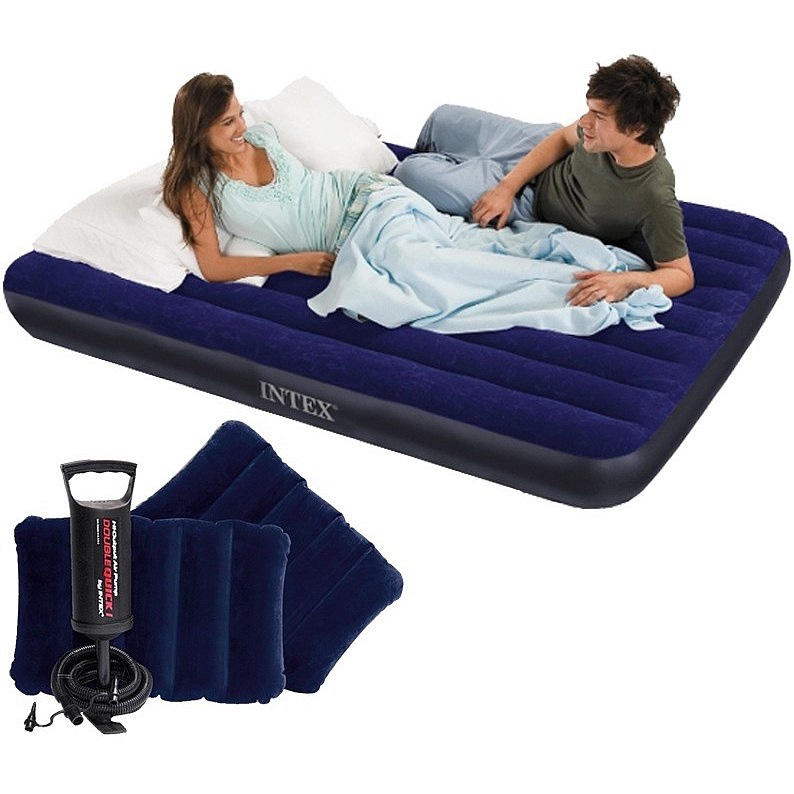 Надувной матрас 152х203х25см Intex Classic Downy Airbed Dura-Beam + 2 подушки + ручной насос