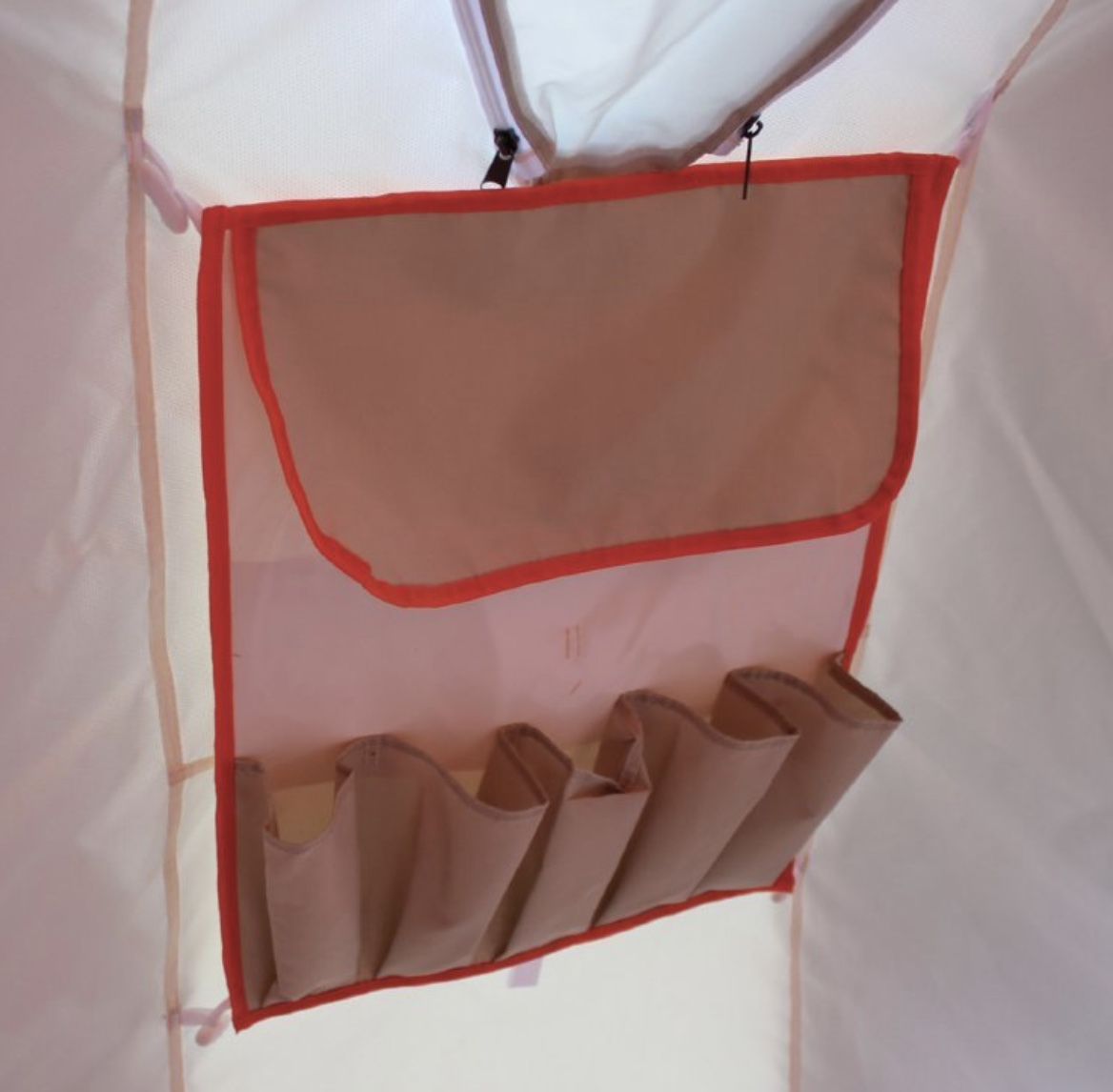 -При снятии внутреннего тента подвесные полки легко перевешиваются во внутрь наружного тента