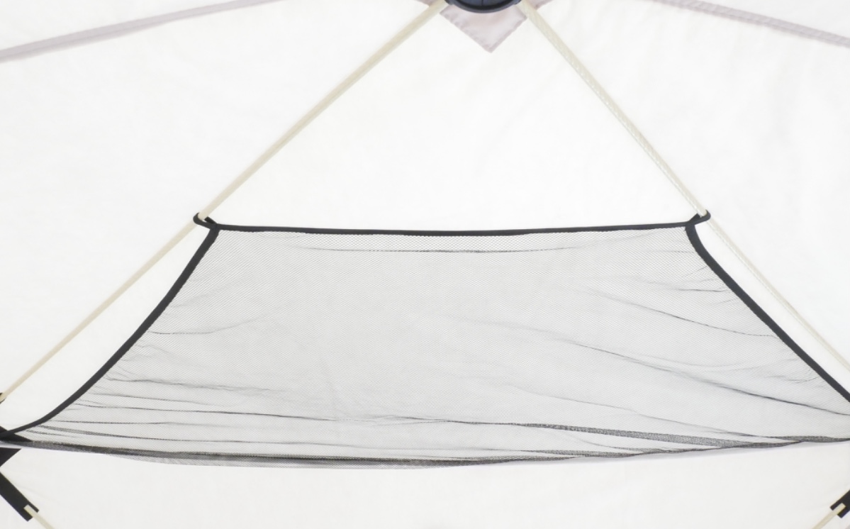 Палатка оснащена 1 входом с двухсторонним утеплением молнии и двумя двойными бегунками с пуллерами и оснащена системой проветривания.