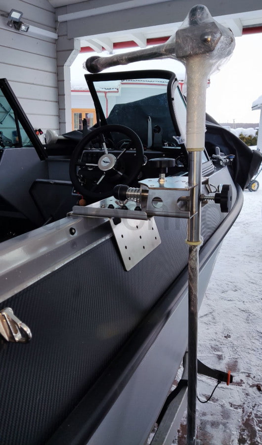 Основание ротатора изготовлено для крепления на борт лодок типа Волжанка 51, 53, учитывая наклон и конструкцию борта лодки.