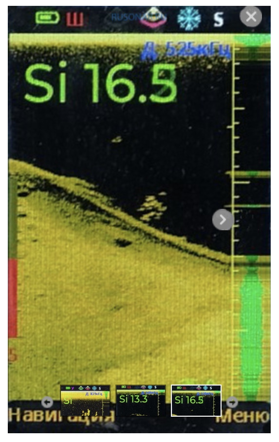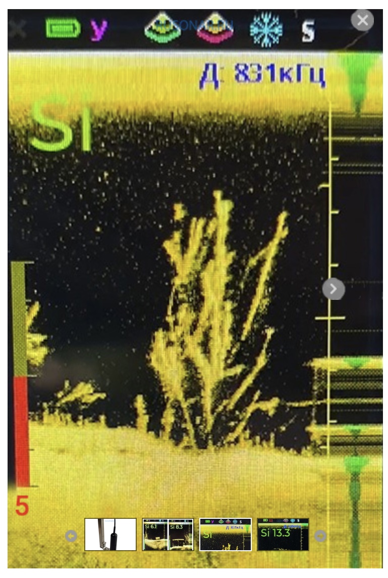 Структурный датчик ЭХОВИЗОР© имеет две рабочие частоты для максимально четкого изображения даже на больших глубинах. Яркие цветовые высококонтрастные палитры создают эффектную картинку с возможностью четкого определения, распознавания объектов и структуры дна.