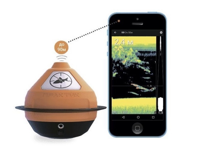 Эхолот Практик 7 WI-FI представляет собой беспроводной датчик «Маяк» и работает совместно со смартфоном или планшетом на базе операционных систем IOS Apple и Android, на которые предварительно необходимо установить бесплатное приложение «Эхолоты Практик 7».
