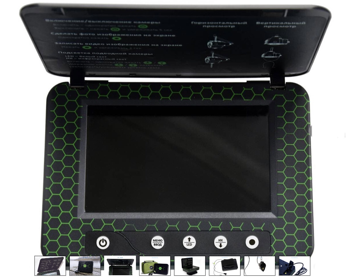 - переносной 5-дюймовый цветной TFT монитор с высоким разрешением 960х480 показывает четкую и яркую картинку даже на глубине 10-15 м при среднем уровне прозрачности воды;