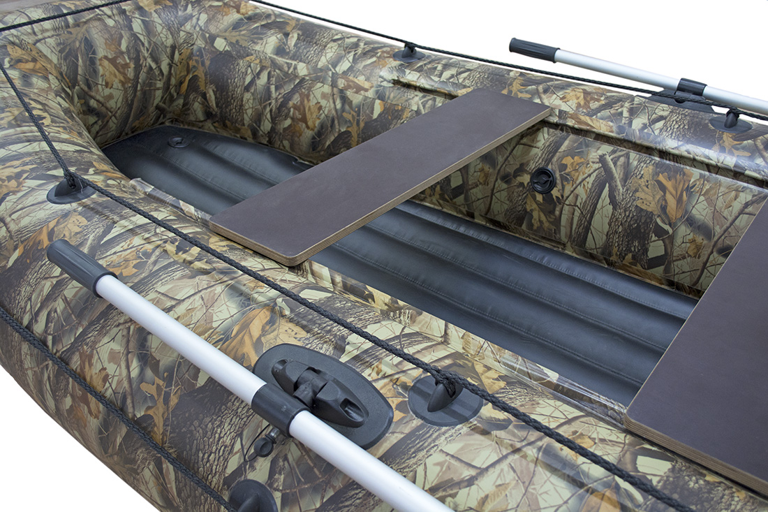В комплекте поставляются 2 складных весла длиной 1,8 м для передвижения с выключенным лодочным мотором. Крепление весел происходит при помощи уключин и защелок, что позволяет установить их вдоль надувной лодки ПВХ 320 в случае, когда они не используются.