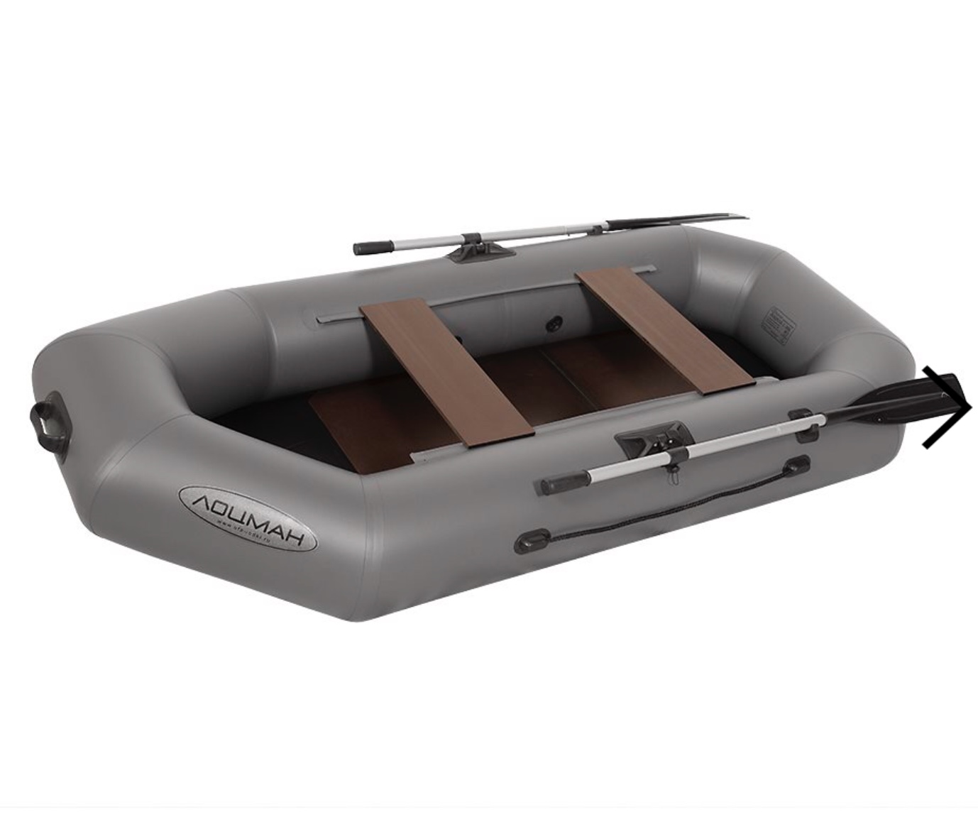 Вёсла выполнены из анодированных алюминиевых труб и снабжены передвигающимися хомутами для регулирования положения весла по длине относительно уключины. Благодаря этому создаются дополнительные удобства гребцу. Съёмная лопасть весла выполнена из полипропилена. Уключина изготовлена из нержавеющей стали.