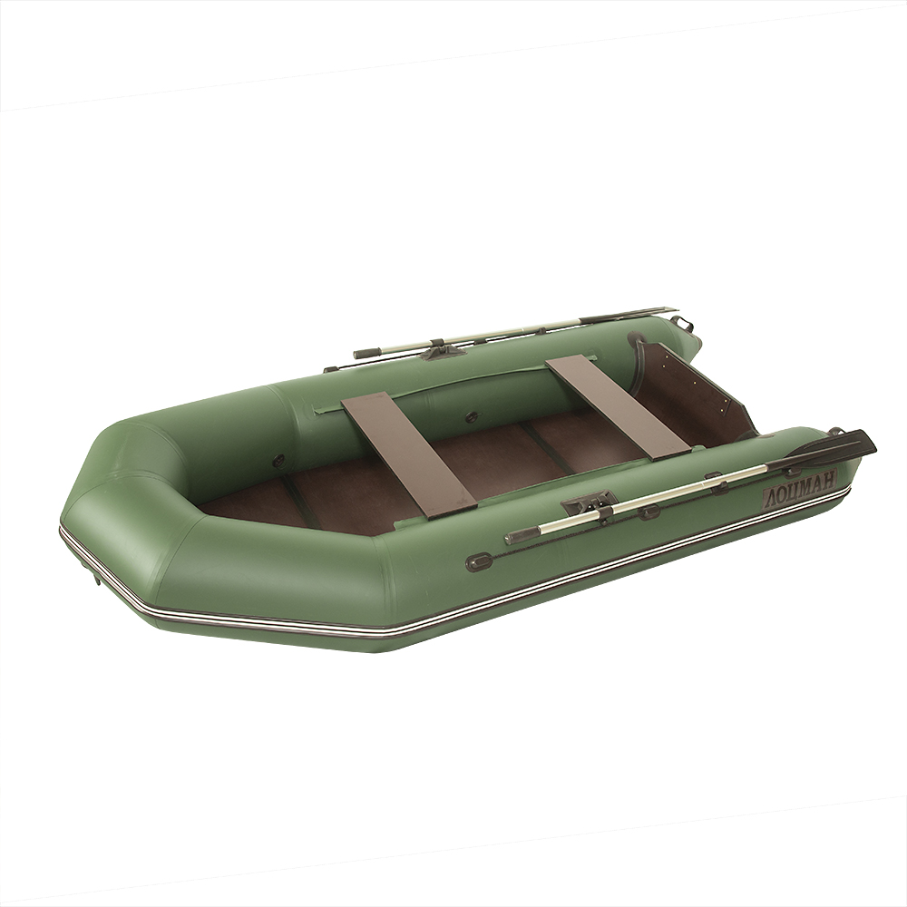 Моторная лодка с плоским дном и жестким транцем под мотор. Изготовлена из ткани плотностью 850 гр./кв.м. Усиление по баллонам ПВХ профилем шириной 50 мм. Имеет минимально необходимый набор опций для комфортного и безопасного нахождения на воде и привлекательную цену для конечного покупателя. Борта лодки разделены воздухонепроницаемыми перегородками на 3 независимых отсека для повышения безопасности. Жесткая слань «книжка» (ЖС) толщиной 9 мм располагается по всему днищу и имеет ленточное соединение. Транспортная упаковка - картонный короб.