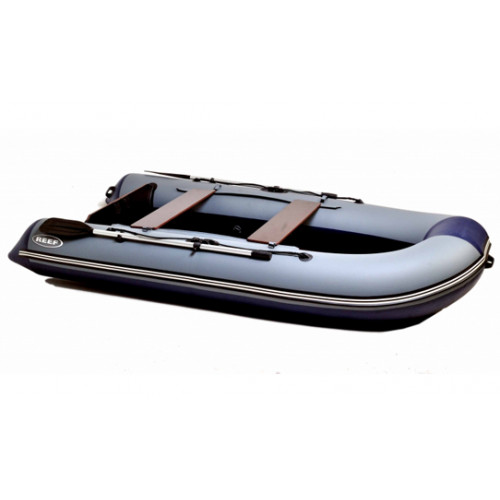 Надувная лодка ПВХ Reef 320KC с жестким фанерным пайолом + стрингера - это моторно-гребная лодка эконом класса Reef со стационарным транцем, килем, фанерным пайолом + стрингера (2 шт.) и передвижными банками.