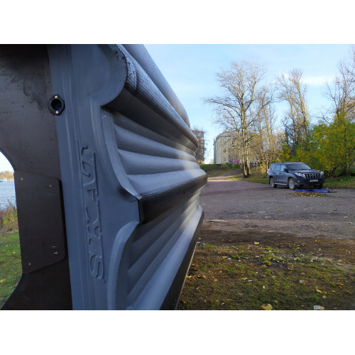 Для максимальной защиты лодки от механических повреждений, баллоны дополнительно проклеены привальным брусом с брызгоотбойником (броня) в 2 ряда. По всей центральной части и боковым частям низа дна, а также на концах баллонов дополнительно наклеен донный брус.