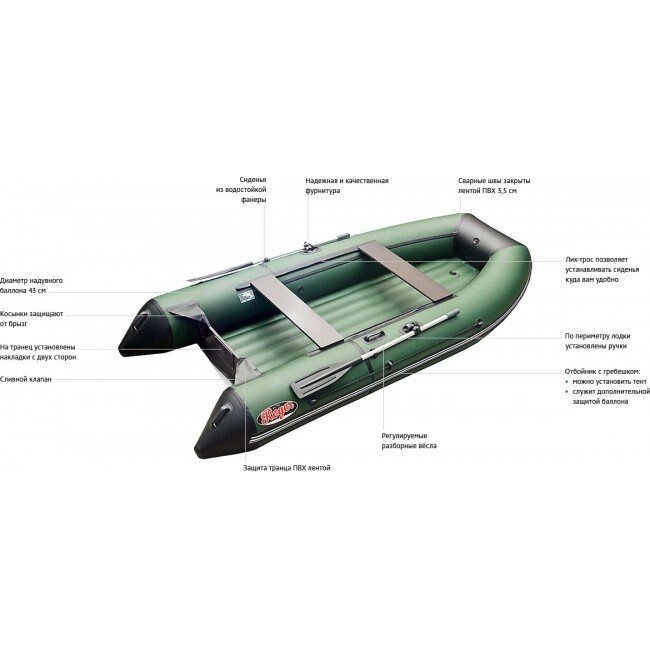 Независимые отсеки надувного дна, при наполнении их воздухом преобразуют дно в V - образную форму, что дает лодке превосходную управляемость по волне.