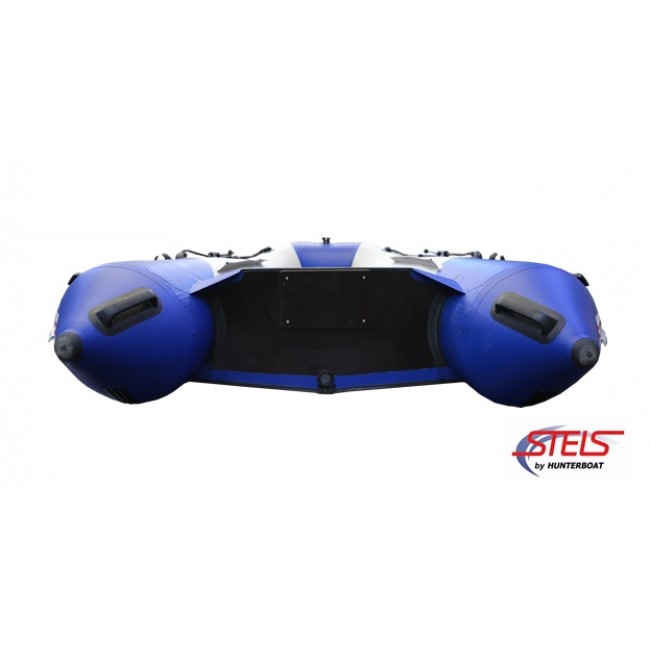 Надувная лодка СТЕЛС 295 изготовлена и ПВХ ткани плотностью 950 гр/м.кв., и представлена в современном дизайне и комбинированном сине/белом цвете.