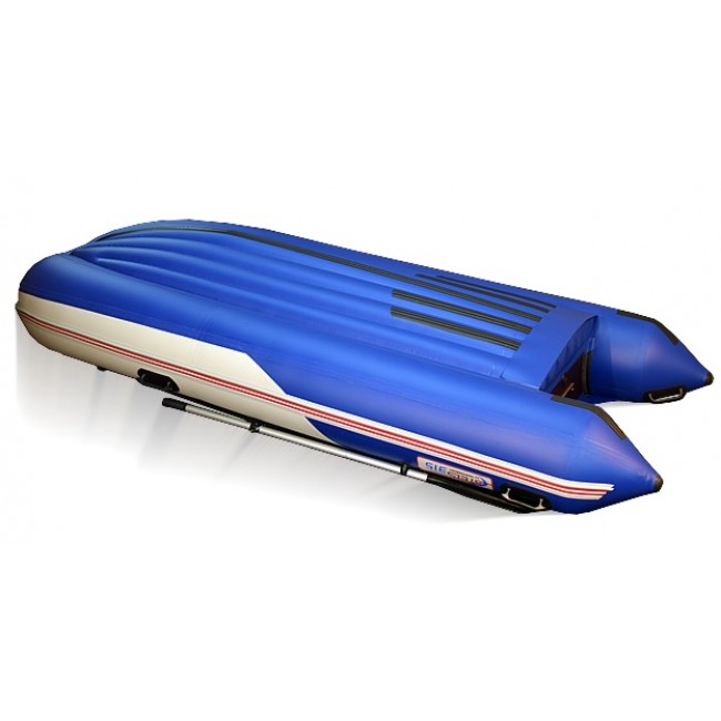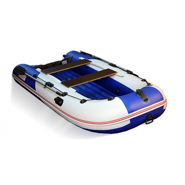 Надувное дно низкого давления уже в базовой комплектации усилено в кормовой и носовой части специальной защитной ПВХ полосой, это позволяет безбоязненно вытягивать лодку на берег.