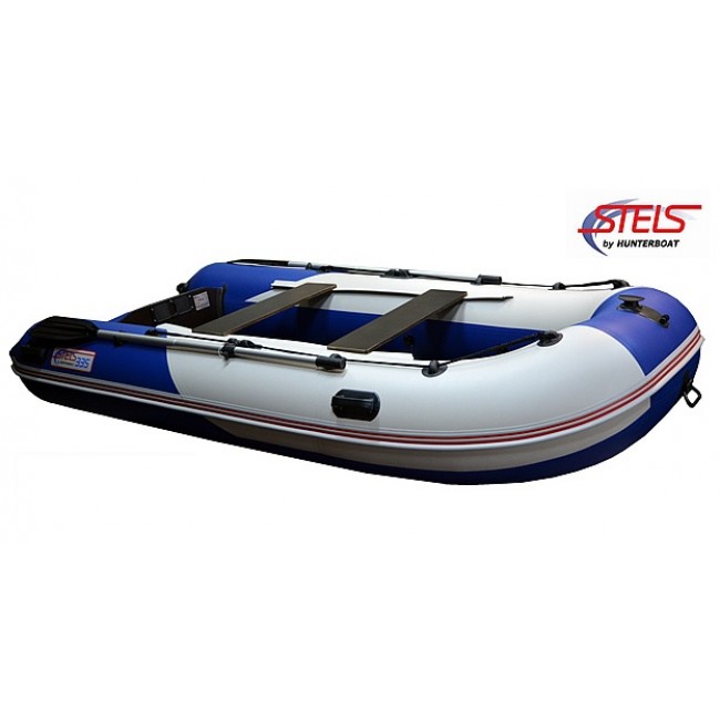 Надувная лодка ПВХ СТЕЛС 335 выполнена в современном дизайне с полностью новыми характерными только для этой модели чертами, и представлена в комбинированном серо/синем цвете.