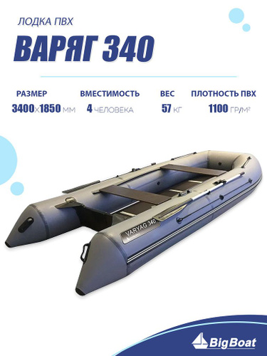 Лодка Varayg 340 является транцевой килевой лодкой с габаритными размерами 3400х1850 мм и диаметром бортовых баллонов 500 мм. Грузоподъемность этой лодки до 500 кг. Лодка состоит из 3 независимых надувных отсеков, которые помогают сохранить плавучесть лодки даже при аварийном проколе 2 из них