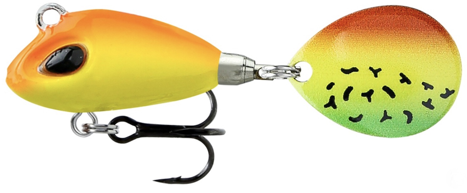 Разнообразная соблазнительная игра и малые габариты - особенность модели Gomoku Spin 10. Тейлспиннер можно применять для вертикальных и горизонтальных проводок. Во время движения в воде плотное, компактное тело динамично колеблется, создавая очень мощные вибрации. Крупный широкий лепесток также усиливает возмущения среды своим интенсивным вращением. Кроме того, он ярко и заманчиво бликует на свету. Благодаря таким качествам, приманка не останется не замеченной. Эксперты Storm при длине 5 см наделили ее весом 10 гр. Облавливать с тейлспиннером можно разные глубины. Тройник VMC уверенно удержит клюнувшую добычу, которой может стать окунь, зубастая щука, крупный голавль, берш, жерех, а также судак и другие хищники.
