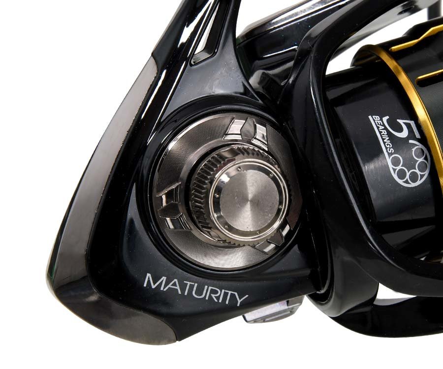 В линейке безынерционных катушек под названием Maturity инженерам компании Ryobi удалось одновременно совместить стильный дизайн (в золотисто-черных тонах), надежность и один из важных для многих рыболовов показателей - достаточно невысокий ценник. Элементы корпуса выполнены из алюминия, а для V-образного ротора берется инновационный композитный материал NCRМ. Кроме этого, стоит отметить перфорированную шпулю из алюминия, которая имеет скошенный бортик, обеспечивающий максимально легкий сход лески, а следовательно - дальний заброс приманки. Передний фрикционный тормоз с микрорегулировкой защищен от воды и грязи специальной резиновой прокладкой. Отличительной чертой этой серии является весьма мягкий ход, обеспечиваемый пятью подшипниками. Как и полагается, катушки оснащены стопором обратного хода, антиреверсом и возможностью перестановки рукояти на противоположную сторону. Т-образный прорезиненный кноб обеспечит надежный хват. В общем, Ryobi Maturity оставляет впечатление, будто вы пользуетесь более дорогой катушкой высокого класса.