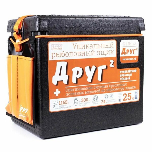 Рыболовный ящик «Друг 2+» предназначен для хранения и транспортировки снастей, а также хранения и транспортировки продуктов питания. Отлично подойдет в качестве сиденья, а если нужно, то и стола. А кроме этого, рыболовный ящик «Друг 2+» может сохранить жизнь, ведь он способен удержать на плаву человека в зимней экипировке.