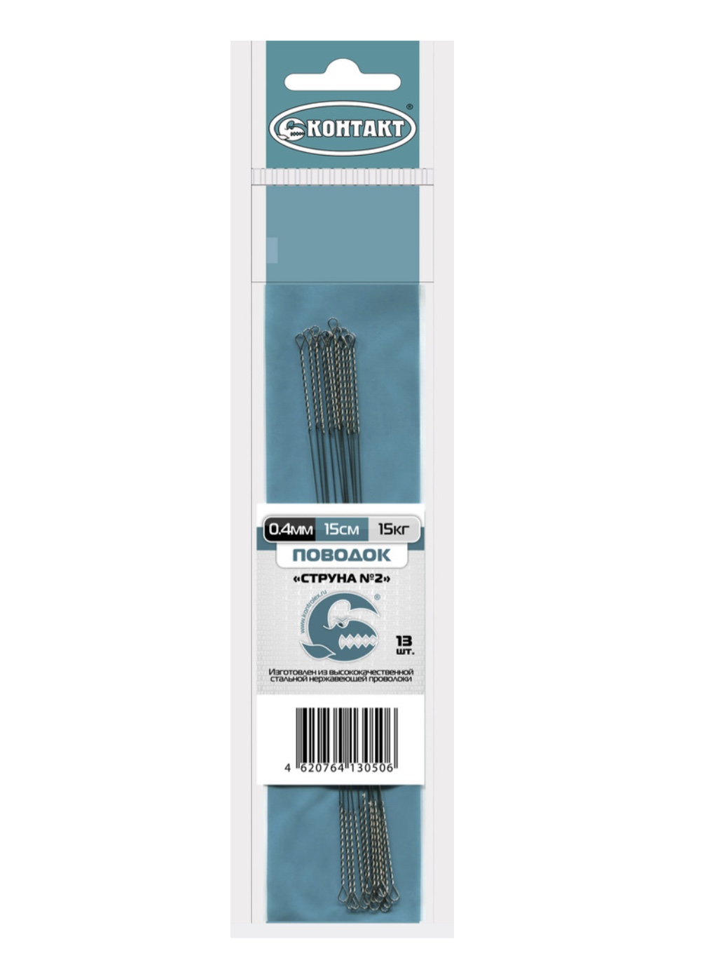 Поводок КОНТАКТ "Струна №2", диаметр 0,4 мм, тест 15 кг, длина 15 см.