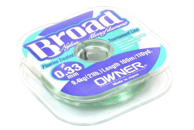 Монофил Broad - универсальная леска от фирмы Owner. Она подойдет для большинства способов ловли, например, для спиннинга, поплавочной ловли или донных оснасток. Она прозрачна и невидима в воде, благодаря чему не отпугивает осторожную рыбу. Леска отличается высокими показателями разрывной нагрузки, хорошо сохраняет прочность на узлах. Специальное защитное покрытие повышает ее антиабразивные качества и износостойкость, за счет чего леска хорошо подходит для донных и фидерных снастей. Производитель утверждает, что леска Owner Broad хорошо калибрована и имеет точный выверенный диаметр по всей длине. Также к ее достоинствам относится минимальная растяжимость и высокая чувствительность. Выпускается в размотках 25, 50, 100 и 300 метров.