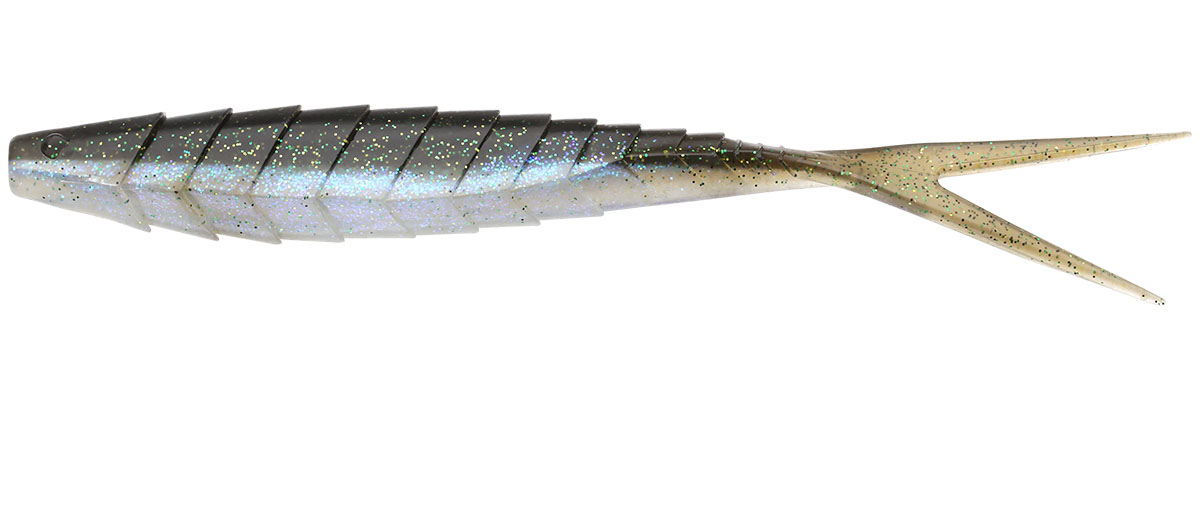 Gekoslug — приманка с округлой в сечении передней частью, рельефной «чешуйчатой» поверхностью и подвижным V-образным хвостиком.