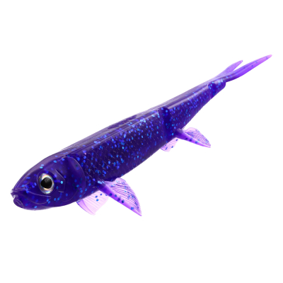 Приманка с округлой в сечении передней частью, рельефной «чешуйчатой» поверхностью и подвижным V-образным хвостиком. Благодаря своей геометрии, обладает очень важной полетной характеристикой: даже с минимальной огрузкой при забросе он устойчив к боковым порывам ветра, летит точно в самых разных условиях.