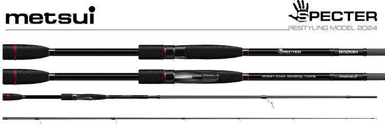 Metsui 24 Specter - обновленные спиннинговые удилища получили новый современный дизайн, при этом сохранили все достоинства предшественника. Применение современных высокотехнологичных материалов для создания бланков Metsui Specter, позволило сделать данные спиннинги мощными и одновременно легкими. Двухчастные бланки удилищ сделаны из высокомодульного карбона, обладают достаточно толстыми стенками и увеличенной конусностью комля. Эргономичная рукоять выполнена из высококачественного материала EVA. Широкий модельный ряд и доступная цена помогут каждому рыболову подобрать необходимое удилище под любые условия ловли.