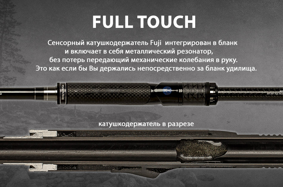 Все модели серии выполнены из высокомодульного графита компании Toray с минимальным содержанием связующих, имеют быстрый строй, легкий вес и в сочетании с катушкодержателем от компании Fuji, установленным по технологии Full Sonic выдают максимальный результат чувствительности.