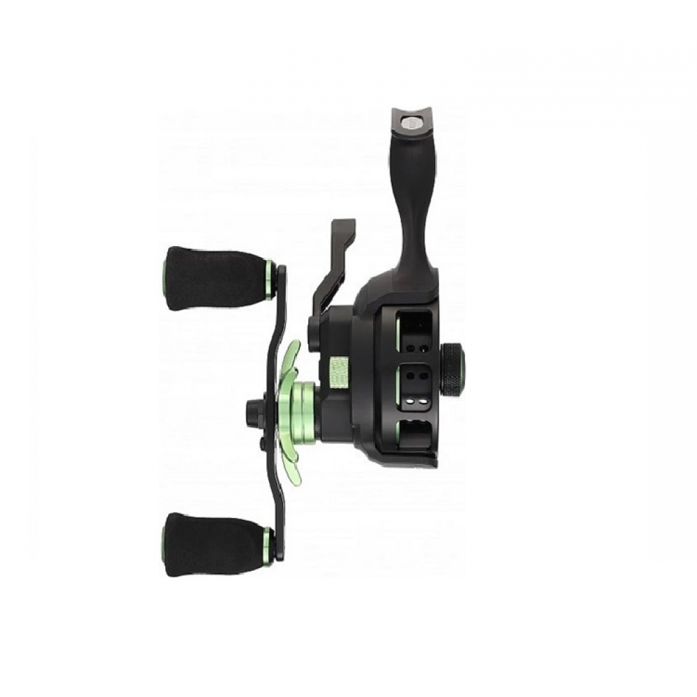 Система подтормаживания шпули — магнитная, легко и предсказуемо регулируемая, работает даже в самый сильный мороз, как с легкими, так и тяжелыми приманками. Рычаг сброса позволяет отпускать шпулю при его нажатии.
