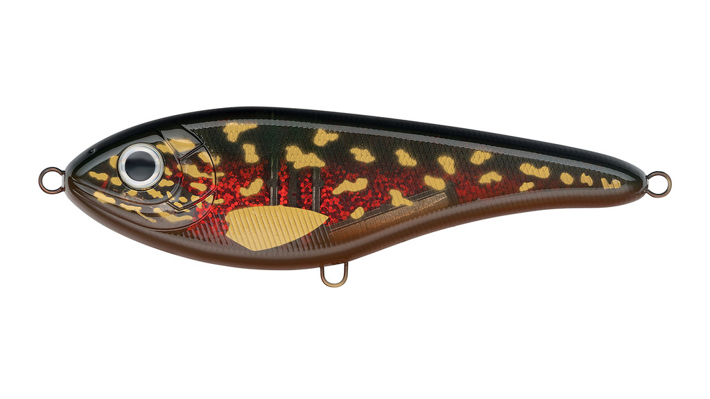 Зубастая щука трофейных размеров может подниматься за легкой добычей ближе к поверхности, либо держаться на глубине. Поэтому джерк Buster Jerk Он особенно хорош на неактивной хищнице, так как на паузе тонет, продолжая немного покачиваться. Этим он напоминает умирающую рыбку, которая является желанной добычей даже для сытой, заторможенной щуки. Приманка при длине 15 см и массе 65 гр довольно послушна и отзывается на любые рывки. Чем они интенсивнее, тем больше Buster Jerk отклоняется от прямой линии. Соблазнительная игра возможна благодаря конструкции, которую разработали шведские эксперты CWC. Однако выпускается серия под брендом Strike Pro. Для того, чтобы джерк лучше привлекал внимание, в корпусе спрятана погремушка. Для слабого освещения предусмотрены светящиеся и флуоресцентные окрасы.