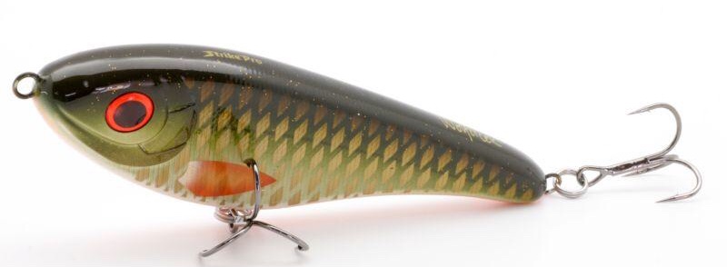 Зубастая щука трофейных размеров может подниматься за легкой добычей ближе к поверхности, либо держаться на глубине. Поэтому джерк Buster Jerk версии Sinking погружается на 0,5 - 4 м. Он особенно хорош на неактивной хищнице, так как на паузе тонет, продолжая немного покачиваться. Этим он напоминает умирающую рыбку, которая является желанной добычей даже для сытой, заторможенной щуки. Приманка при длине 15 см и массе 75 гр довольно послушна и отзывается на любые рывки. Чем они интенсивнее, тем больше Buster Jerk Sinking отклоняется от прямой линии. Соблазнительная игра возможна благодаря конструкции, которую разработали шведские эксперты CWC. Однако выпускается серия под брендом Strike Pro. Для того, чтобы джерк лучше привлекал внимание, в корпусе спрятана погремушка. Для слабого освещения предусмотрены светящиеся и флуоресцентные окрасы.
