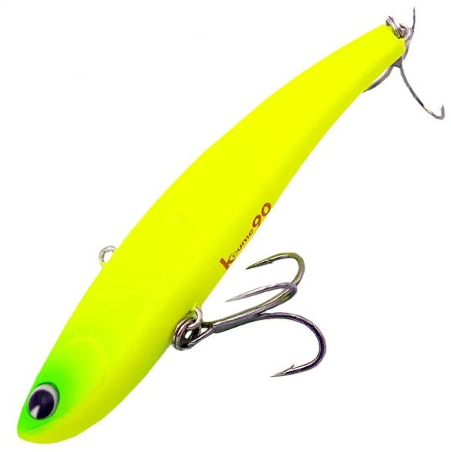 Средняя по размеру модель Koume 90 длинной 9 сантиметров и весом 20 гр. В подвешенном состоянии в воздухе Koume 90 занимает горизонтальное положение с небольшим креном на нос. В воде благодаря воздушной камере в теле приманки, расположенной ближе к хвостовой части, крен на нос увеличивается. Это вносит свои нюансы в поведение на проводке. Игра очень активная, живая с дальним уходом от вертикали. И что самое главное – сохраняется тот неповторимый момент, когда наша приманка при сбросе отлично планирует на боку в сторону и потом возвращается в точку первоначального движения