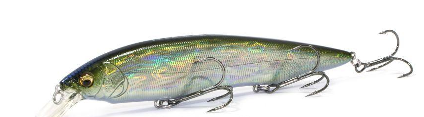 Японская компания Megabass расширила свой ассортимент объемных пластиковых приманок, выпустив воблер под названием Kanata. Это довольно-таки крупная приманка длиною 16 см и весом 30 гр. Но ощущение громоздкости развеивается, когда берешь ее в руки. Дело в том, что при своей внушительной длине, Каната достаточно плоская - максимальная толщина составляет чуть более 1 см. Благодаря такому корпусу, минноу активно играет даже на простой равномерной проводке, при которой он демонстрирует плоские бока. Но самой лучшей анимацией является твичинг, при котором приманка широко мечется из стороны в сторону. Также за игру отвечает лопатка оригинальной формы, определяющая горизонт заглубления в районе одного метра. Ну, а чтобы увеличить дальность заброса и без того тяжелого воблера, внутри расположена простейшая система, состоящая из продольного канала с тремя шарами из металла. В качестве потенциального трофея стоит рассчитывать на крупную щуку, для удержания которой Kanata укомплектована мощными тройными крючками.