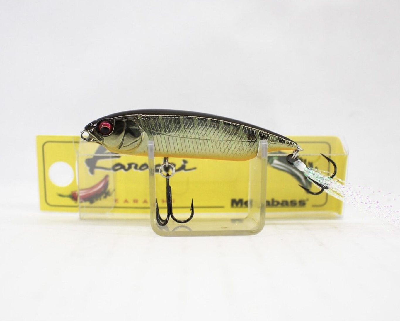 Megabass Karashi - это ультралайтовый воблер, который можно использовать как топвотер и для облавливния более глубоких слоев. Если остановить анимацию, он погружается неспешно ко дну, потому с ним можно облавливать поверхность и более глубокие слои водоема. Геометрия модели близка к волкеру. Однако в головной части внизу есть небольшая выемка, что схожа с попперной. Эта деталь и задает игру приманки. Помогает создавать при резких рывках брызги и пузыри. Хвостовой тройник замаскирован длинной люрексовой мушкой. Для того, чтобы стабилизировать модель, в головной и хвостовой части есть огрузка. Неплотная фиксация элементов обеспечивает дразнящий шумовой эффект.