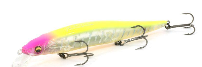 Изящный минноу прогонистой формы серии Oneten Magnum SP подойдет для охоты на трофейную зубастую щуку. Длина его корпуса составляет 13 см, заглубление - до полутора метров. Модификация SP наделена нейтральной плавучестью. Подойдет, чтобы растормошить вялую, ленивую рыбу в периоды бесклевья и осенний сезон. Корпус приманки огружен тремя элементами. В головной части расположен цилиндр, в хвостовой - шар, а посредине вдоль брюшка зафиксирована металлическая пластина. Потому минноу сохраняет остаточный роллинг (продольные колебания) во время паузы в анимации. Суспендер способен долго мелькать перед глазами рыбы, курсируя вдоль заданного горизонта. На остановках будет зависать, соблазнительно покачиваясь. Потому даже пассивная, сытая щука не сможет устоять. Эффективной в таком случае является методика Stop & Go, классическая равномерка. На твичинге Oneten Magnum SP от Megabass будет широко рыскать по сторонам.