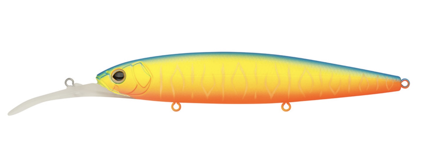 Приманки серии Bold Deep Diver ориентированы на ловлю на большой глубине. Их рабочий горизонт находится в пределах от 2,5 до 5 метров. С таким заглублением можно добыть по-настоящему крупного хищника. К тому же, приманка достаточно массивная: ее вес составляет 24 гр при длине в 13 см. Плавучесть нейтральная. Поэтому во время паузы в проводке воблер будет просто зависать в своем рабочем горизонте. В качестве проводки можно применить равномерку или чередование потяжек и пауз. Bold Deep Diver наделен собственной активной игрой, которая характерна для этого типа приманок. За счет формы корпуса и массы приманку удастся доставить в перспективный участок на водоеме, подобравшись к осторожному хищнику как можно ближе.