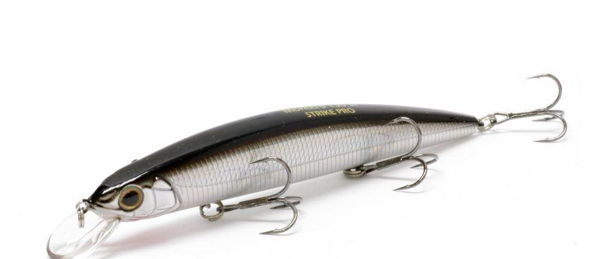 Приманкой высшего класса можно смело назвать воблер типа minnow от компании Strike Pro Montero 130SP. Все в этой приманке на самом высоком уровне: рабочие характеристики, уловистость, покраска, качественные фурнитура и материалы. Воблер будет актуален при облове мелководья и при ловле пассивной хищной рыбы в холодной воде. Внутри приманки расположены три шарика, которые положительно влияют на дальность заброса. На равномерной проводке Montero начинает играть уже на небольших скоростях и обладает отличным роллингом, сверкает оттенками брусковатого тела. При твичинговой проводке приманка очень отзывчивая и позволяет выполнять различные вариации проводок с большим диапазоном отклонений воблера от направления рывка.