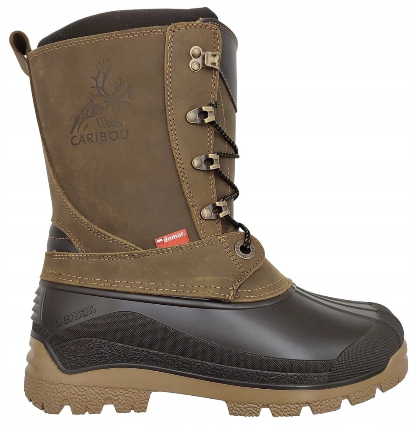 Стильным и идеальным элементом декора и стиля сапог DEMAR Caribou Pro является изображение оленя и надписи "CARIBOU" на внешней стороне натуральной кожи