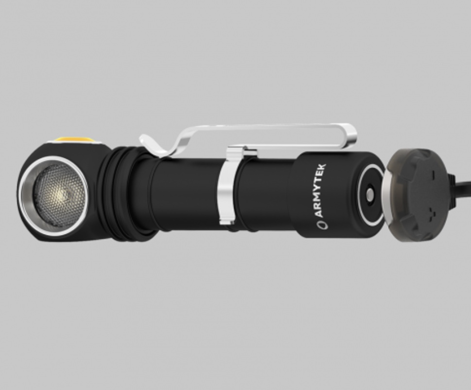 В комплект входит комфортное налобное крепление, клипса для фиксации на одежде или рюкзаке и велокрепление ABM-01. Wizard C2 Pro совместим с креплением на каску AHM-02 и подходит для строительных работ.