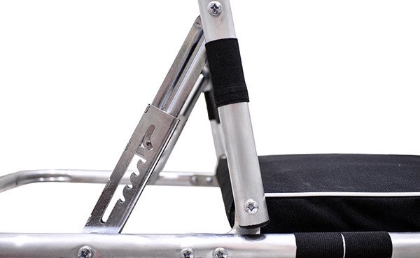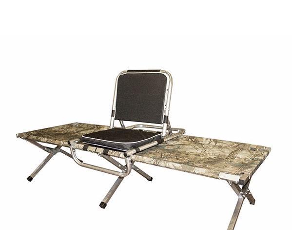 Складное алюминиевое кресло - удобное дополнение к раскладушке, позволяющее снизить нагрузку на спину при длительном сидении, например, во время зимней рыбалки.