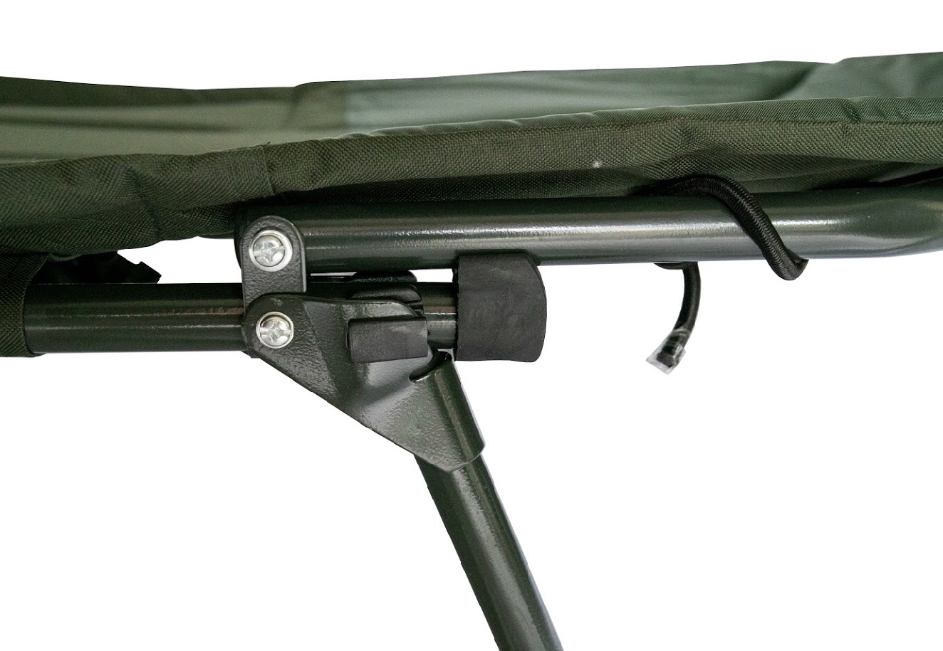Простая в использовании и очень надежная (благодаря стальному каркасу) карповая раскладушка, способная выдержать нагрузку до 150 кг.Благодаря регулируемому наклону спинки модель может использоваться и как карповая кровать, и как рыбацкое кресло одновременно.