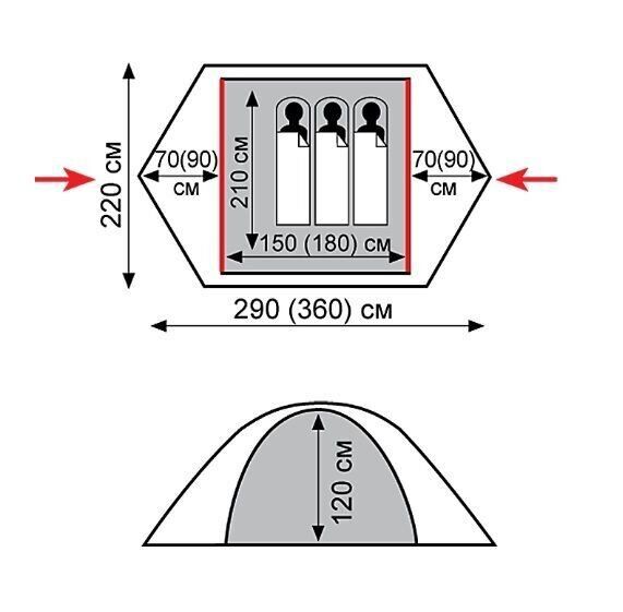 • два дополнительных тамбура, увеличивающих внутренний объём палатки, дают возможность держать снаряжение внутри;